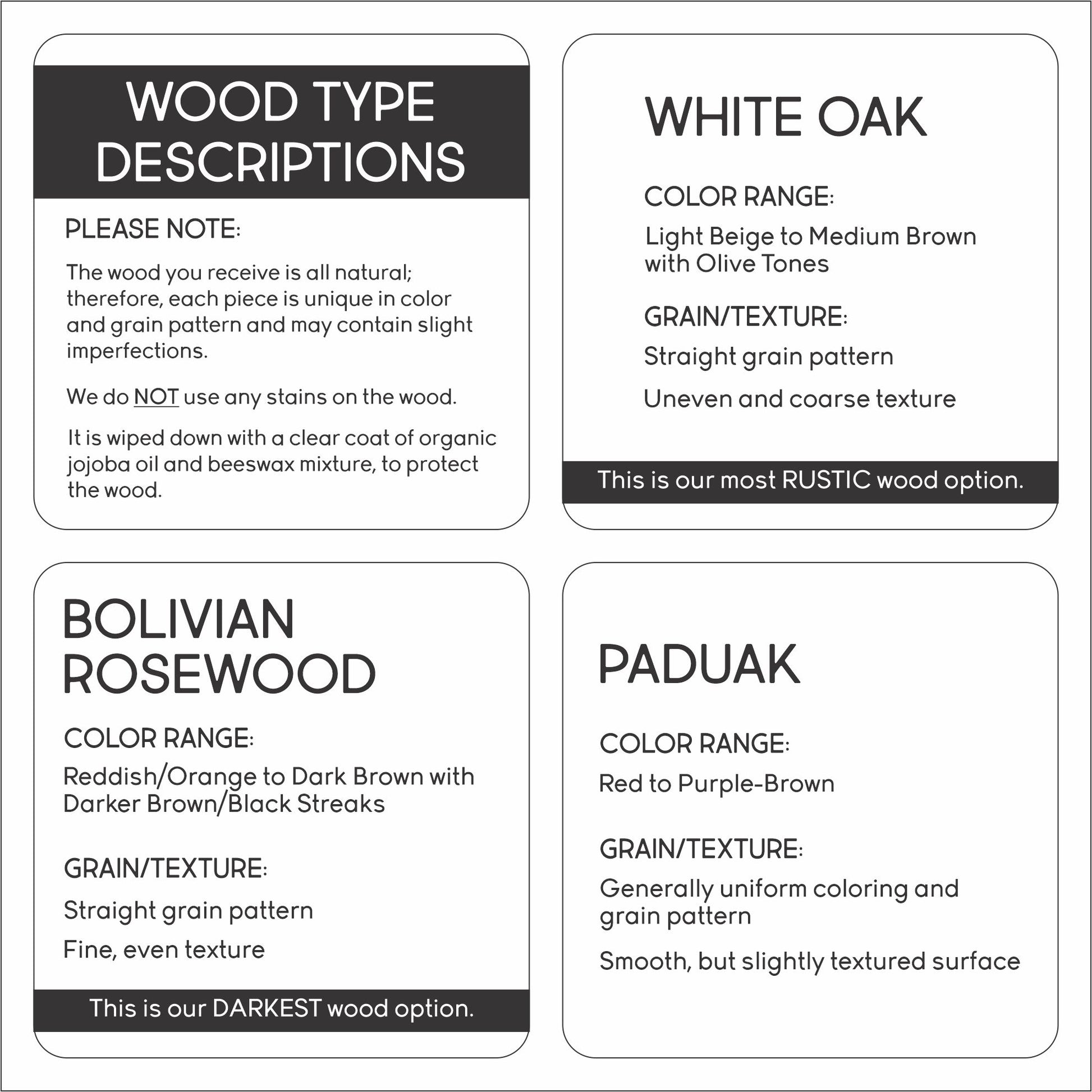 Please note that just as with all wood types, each piece is unique in grain pattern and color (ranging from light to dark, even within the same piece of wood), and may contain slight imperfections. The keychains you receive may not look exactly like the ones in the listing photos.